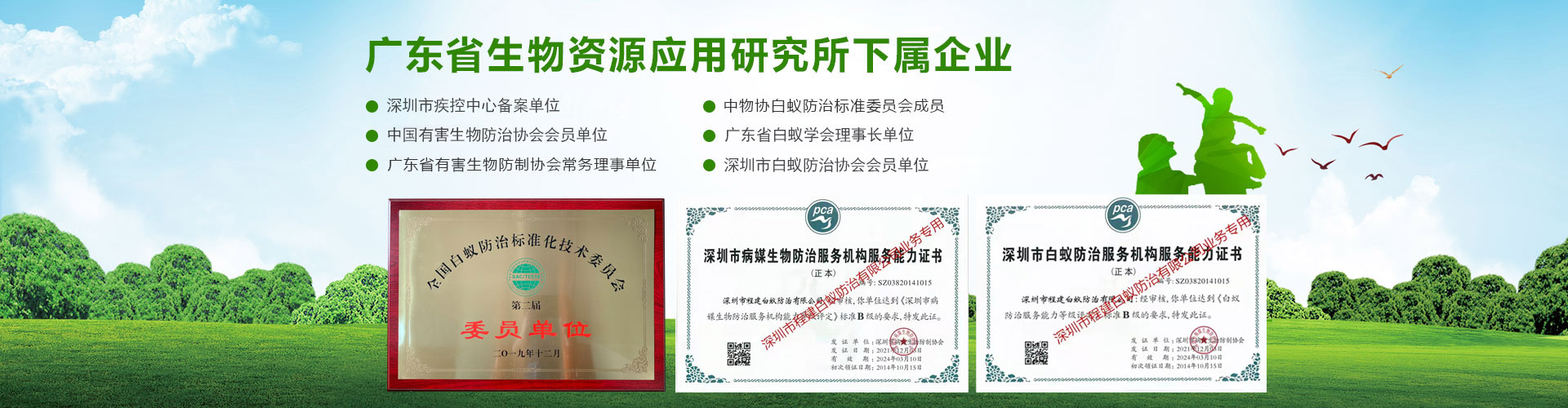 專注于徹底根治、防治結(jié)合,售后跟蹤服務(wù),專業(yè)服務(wù)工程師有豐富實(shí)戰(zhàn)經(jīng)驗(yàn)超過(guò)十年。持有專業(yè)資格證書認(rèn)證:“有害生物防制服務(wù)機(jī)構(gòu)服務(wù)能力證書B(niǎo)級(jí)”、“白蟻防治服務(wù)機(jī)構(gòu)服務(wù)能力證書B(niǎo)級(jí)”所有員工持有“深圳市白蟻防治上崗證”和“深圳市除蟲滅鼠上崗證”,雙資格證上崗服務(wù)。榮獲過(guò):“優(yōu)質(zhì)服務(wù)示范單位”、“白蟻防治服務(wù)信譽(yù)AAA級(jí)單位”、“深圳市白蟻防治先進(jìn)單位”、“深圳市十大白蟻防治品牌”、“深圳市殺蟲公司”、“深圳市消殺公司”先進(jìn)單位等榮譽(yù)。